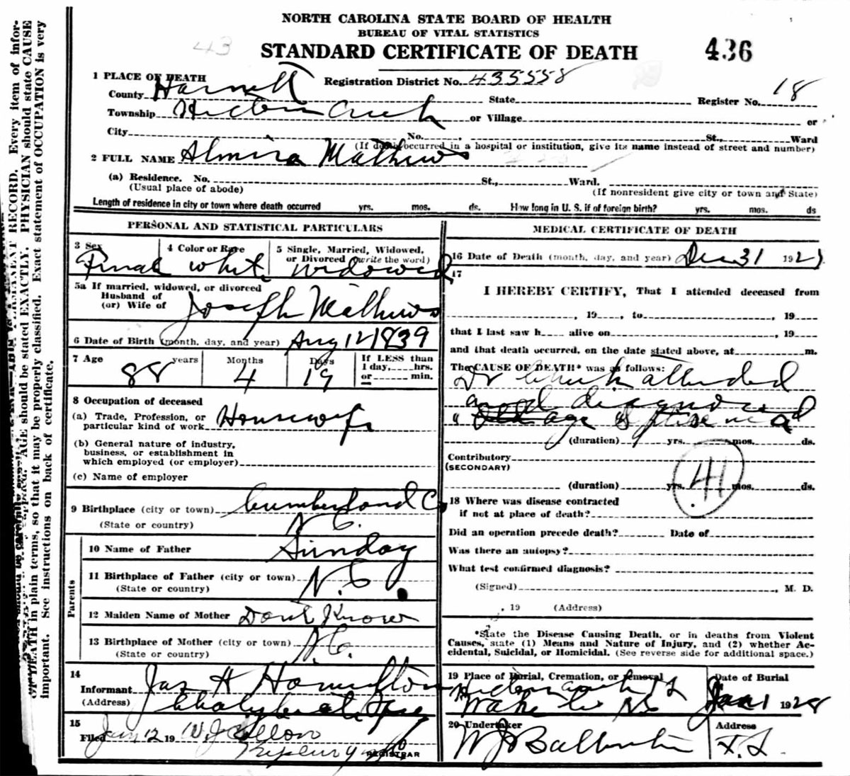 - Married: December 19, 1859 in Cumberland, North Carolina