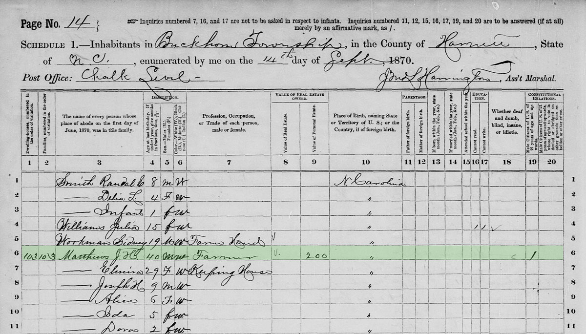 - Married: December 19, 1859 in Cumberland, North Carolina