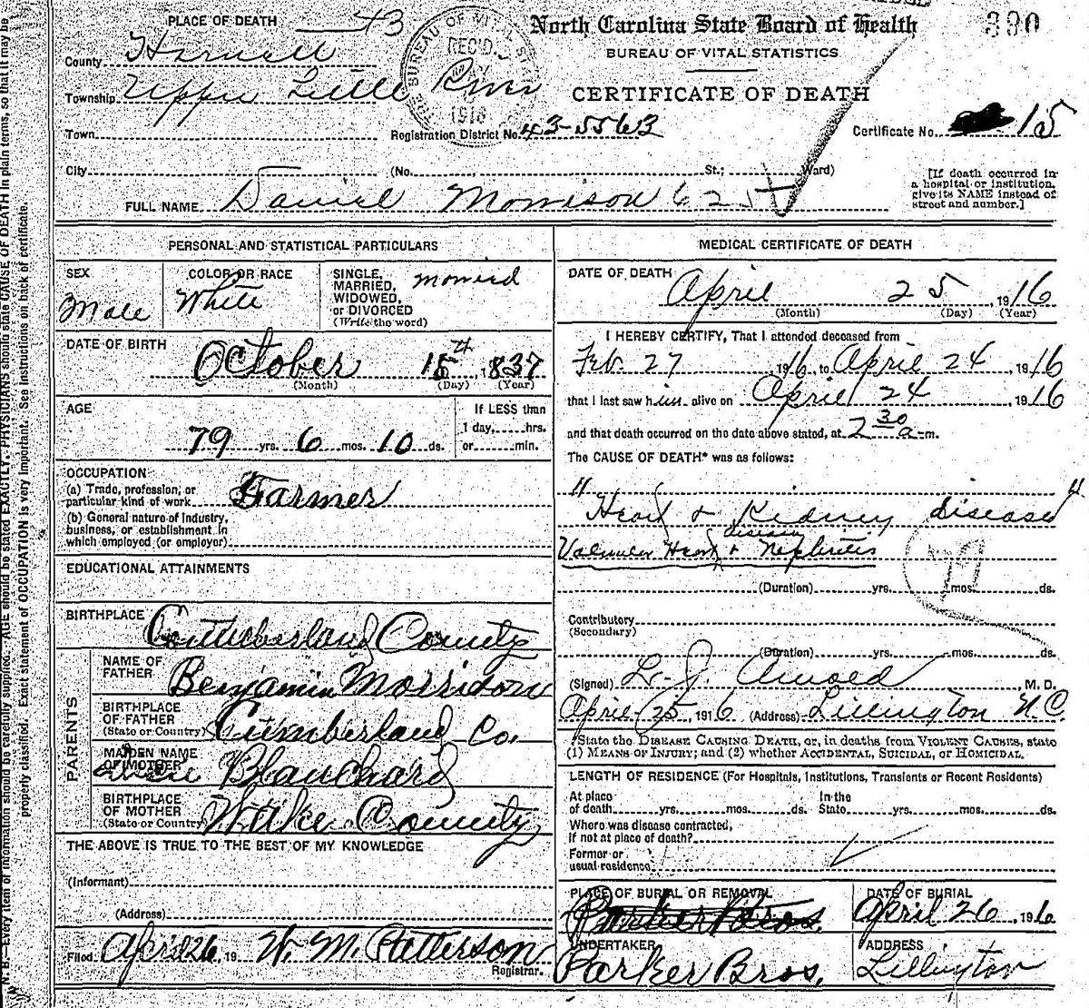 1000 acres of land Cumberland County (now Harnett) on October 14, 1783