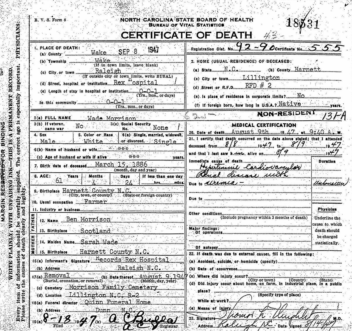 Lonnie was born the same year Sarah A. Wade died (1890)
